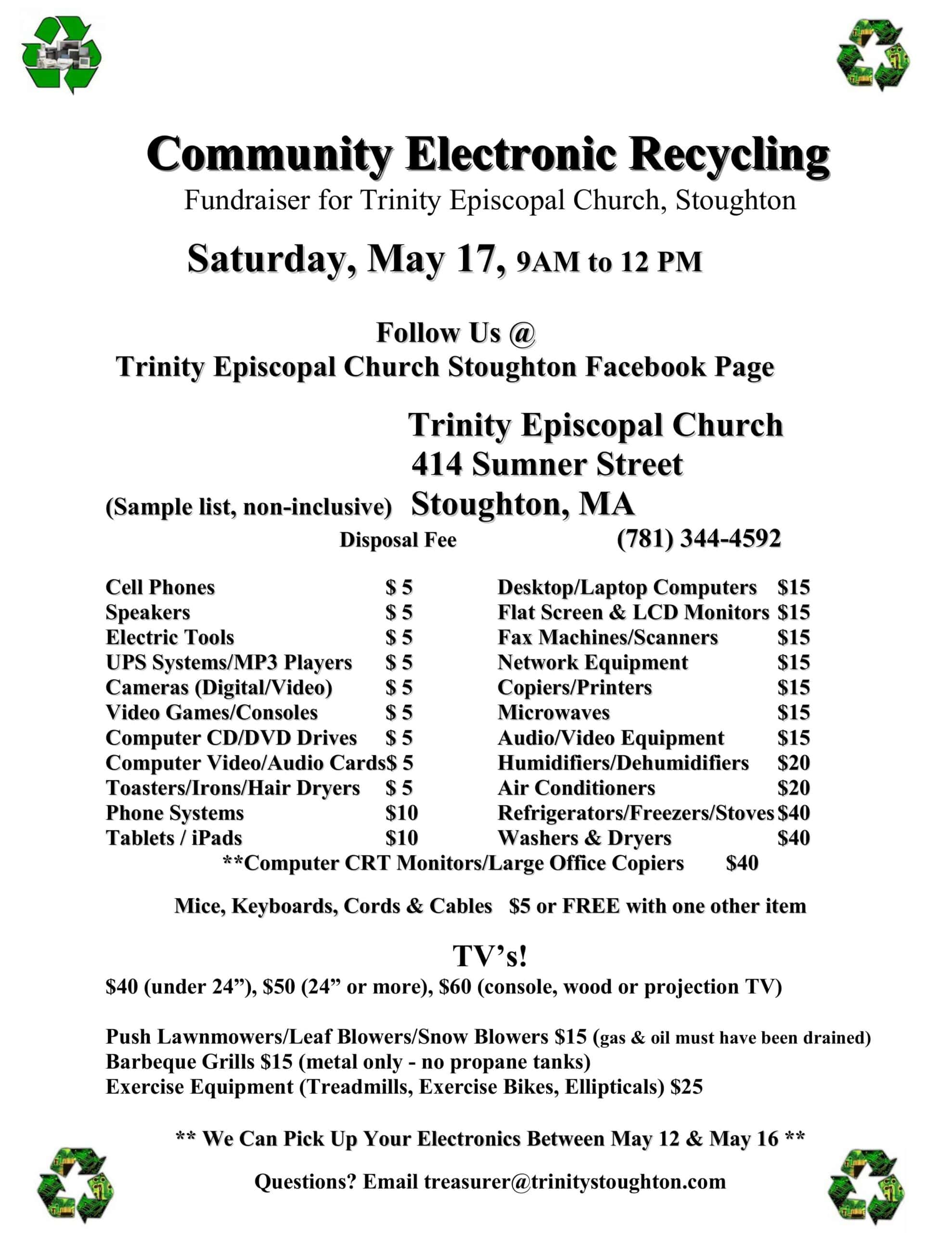 Prices are determined by the event coordinator. Please contact them directly for details on specific recycling item costs. Thank you.